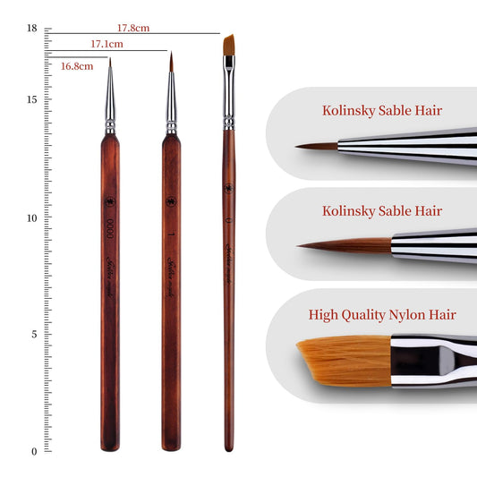 3PCS Kolinsky Sable Miniature Detail Brushes Nylon Angled Brush Set