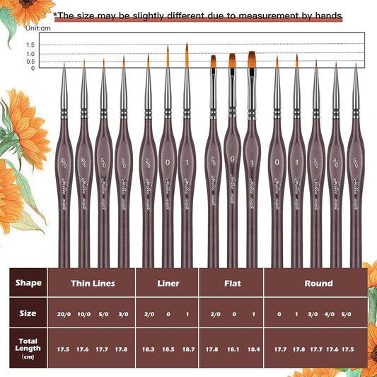 15PCS Micro Detail Paint Brush Set Flat/Liner/Round/Miniature Brush