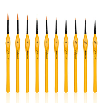 This set of detailing brushes comes in a variety of sizes(5/0, 3/0, 2/0, 0, 1, 2, 3, 4, 6, 8), which helps elevate your miniature art and model crafting. Specifically designed for precision work, these triangular handle brushes offer superior control and comfort, making them perfect for miniature painters, scale modelers, artists, and hobbyists.