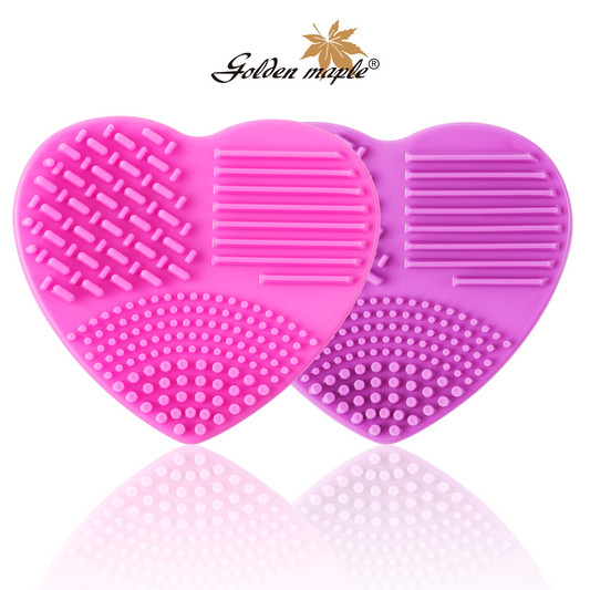 Golden Maple Brush Cleansing Brush Cleaner,Soft Silicone Washing Scrubber,Heart shaped Scrub for Cosmetic Makeup Brush Cleaning Mat