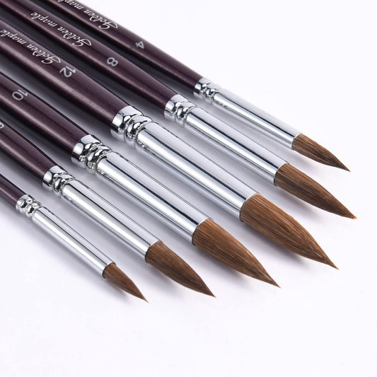 6PCS Sable Hair Watercolor Round Point Brushes
