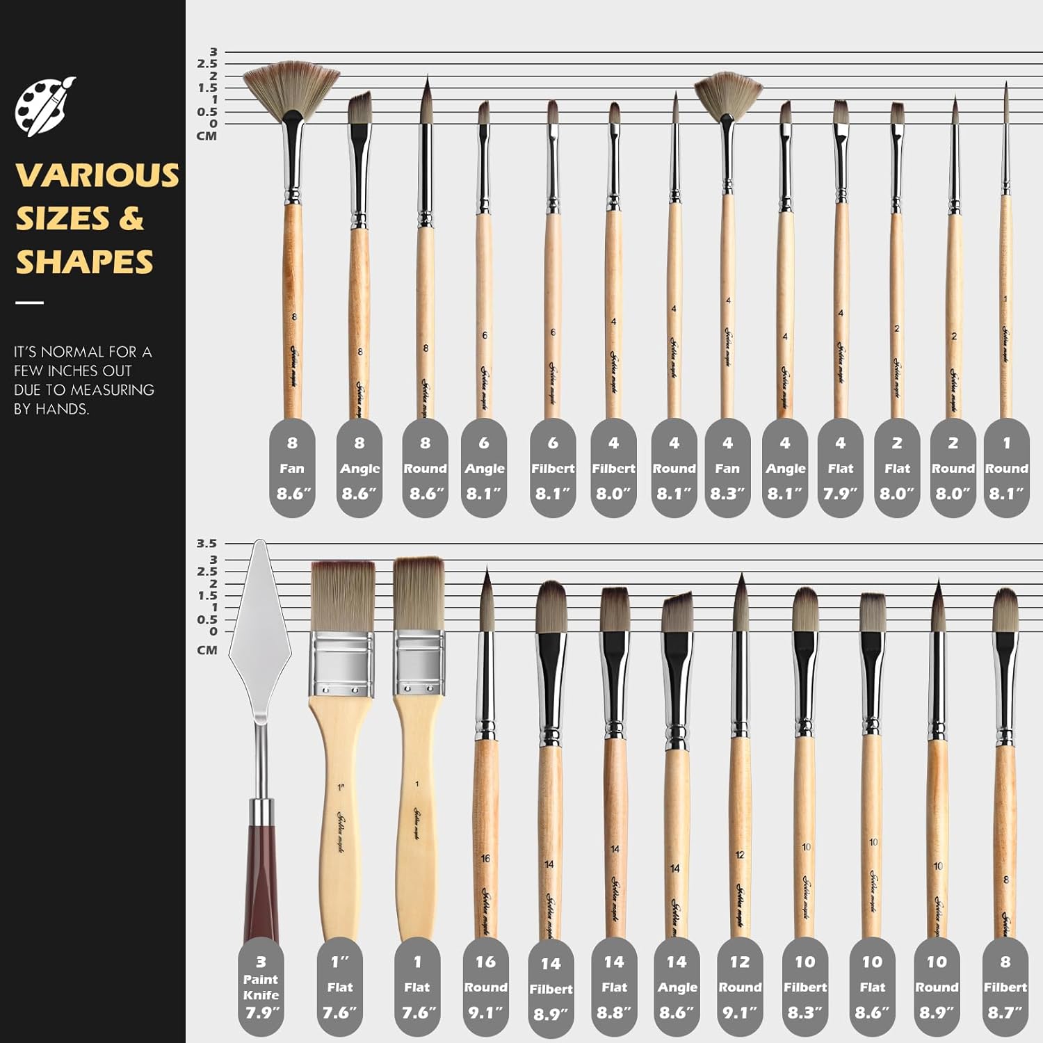 - Desain untuk lukisan sempurna: Total 25 buah kuas cat fungsi yang berbeda memberikan pengalaman sempurna dalam akrilik dan cat air, set kuas cat artis ini mencakup semua berbagai proyek dan fitur 100 persen pegangan kayu alami dan rambut nilon, ringan dan mudah dipegang. Ini adalah set hadiah yang luar biasa untuk seniman dan pelajar dari segala usia.