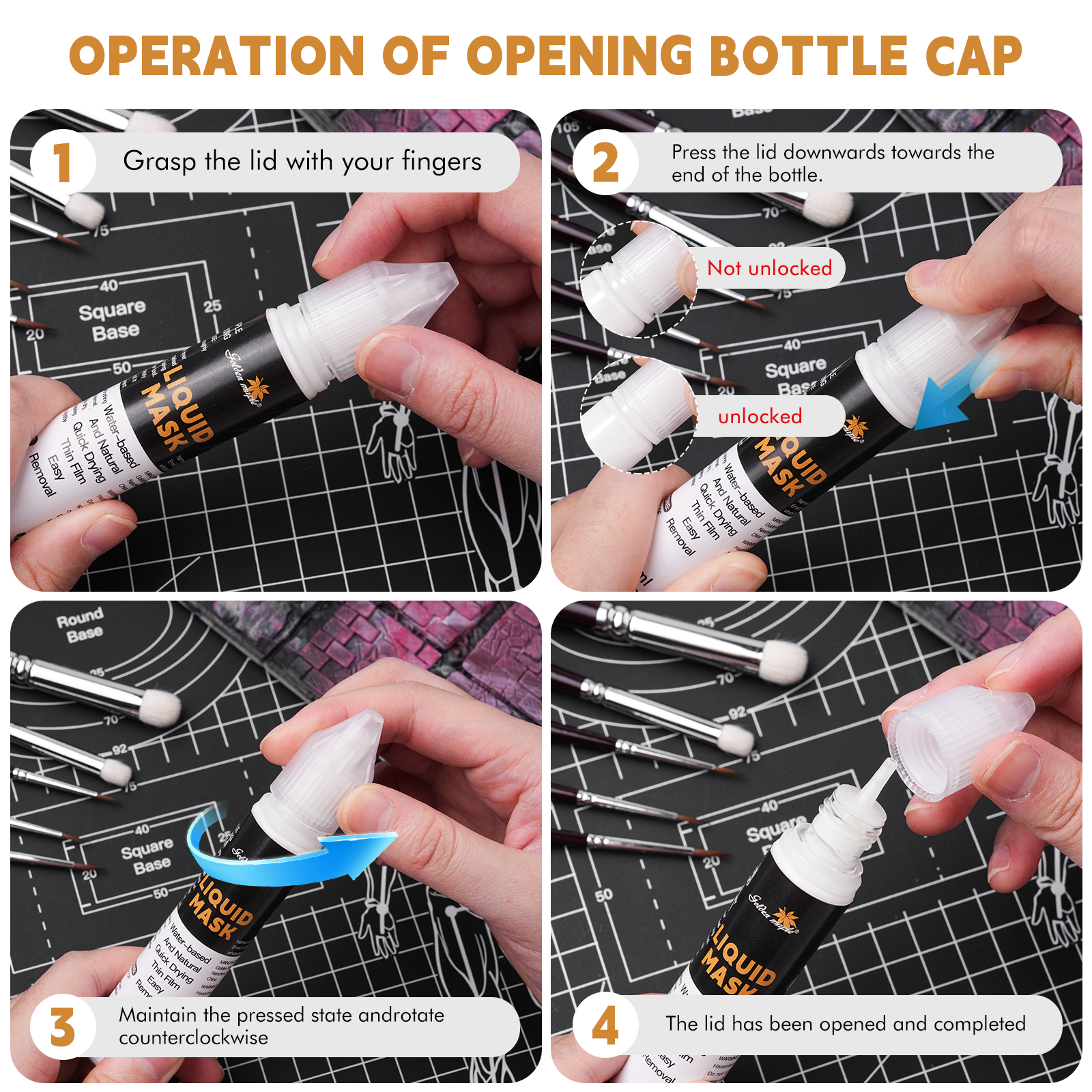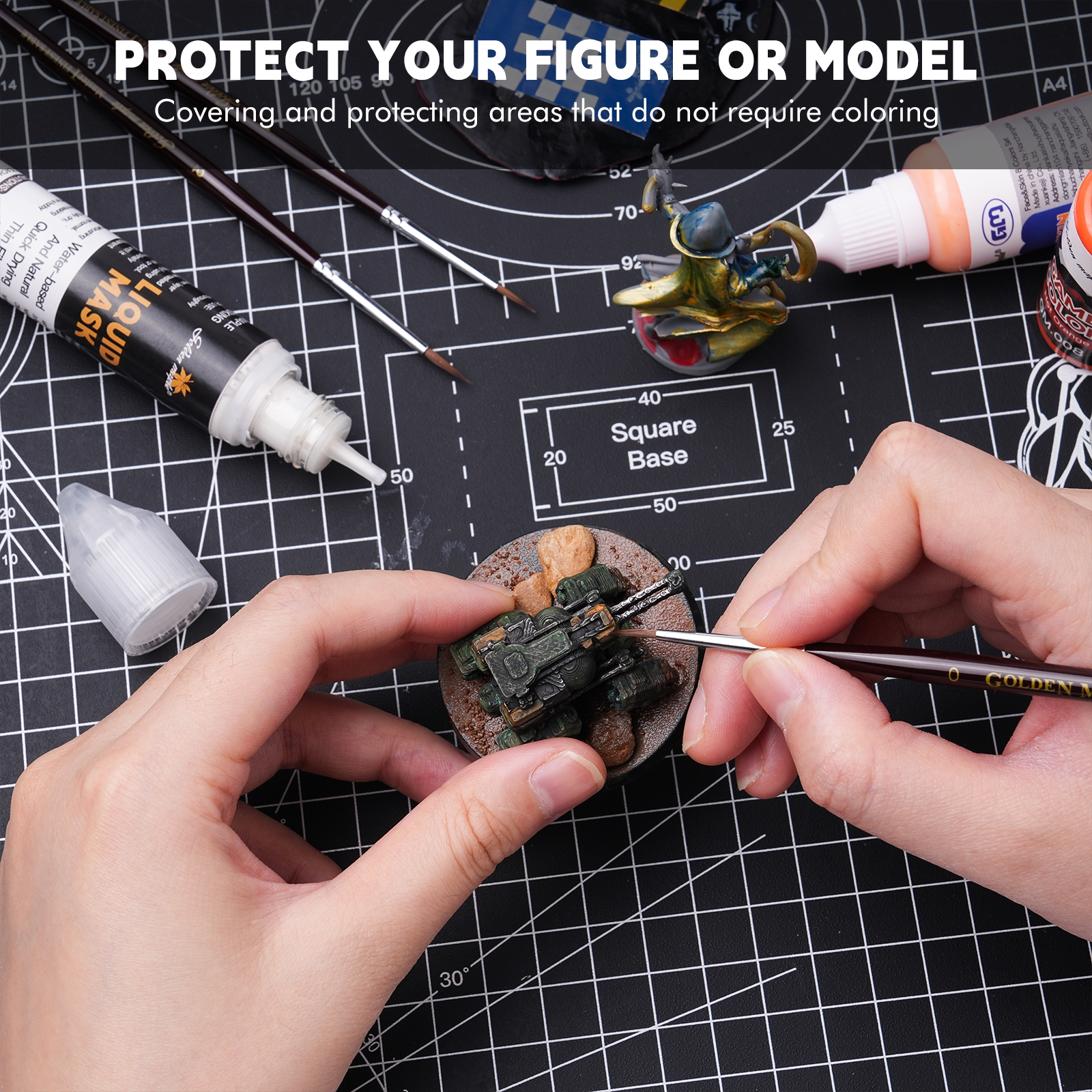 Turquoise blue masking liquid that covers and protects areas of your figure or model that you do not want to paint. Once the liquid dries, it creates a thin film very easy to remove, when you have finished painting the rest of your figure, by pulling it.