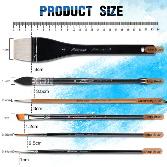 Golden Maple & Le Bao Chau 6PCS Professional Watercolor Gouache Brush Set