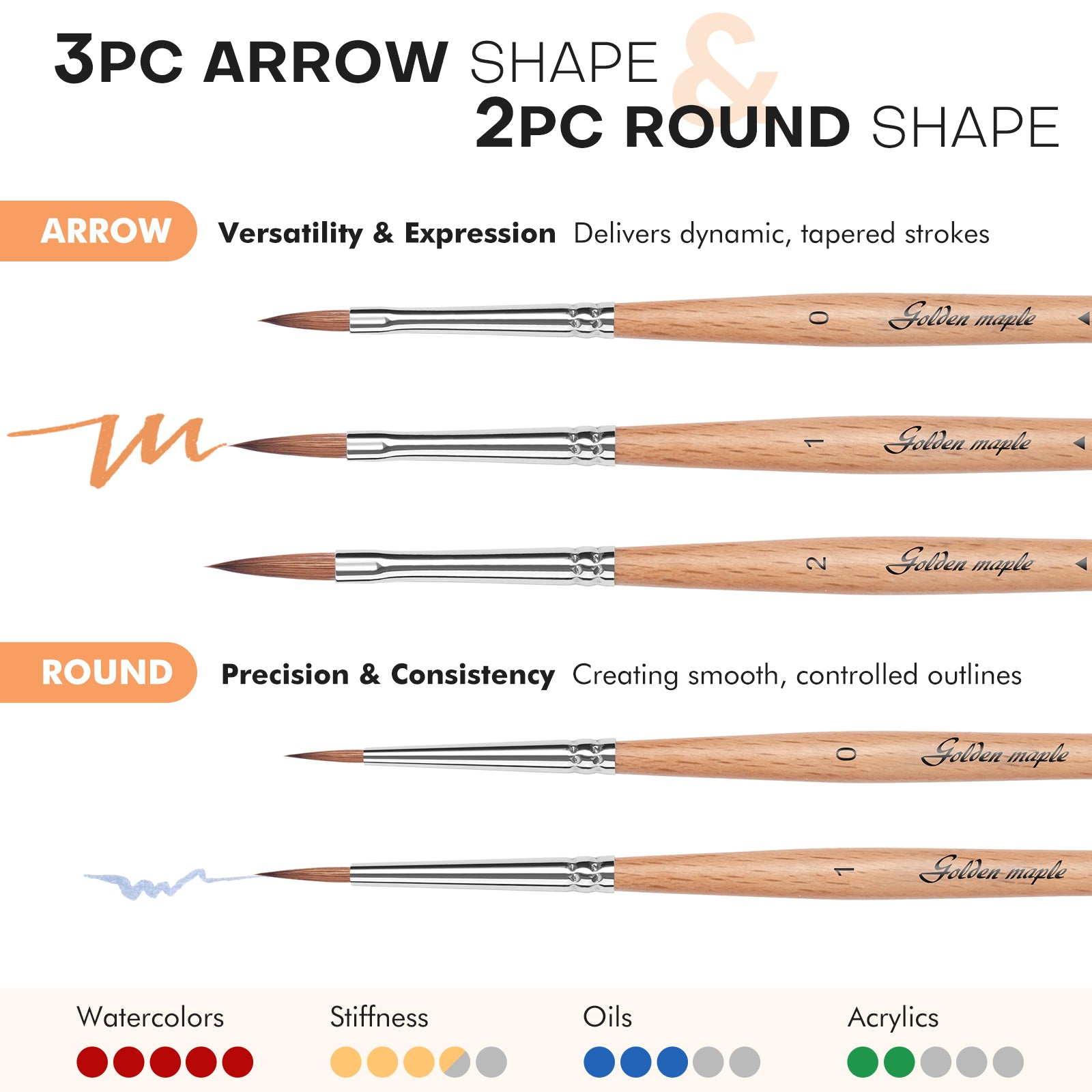 Premium Golden Maple Kolinsky Sable Brush Set - 5PCS for Miniature Painting