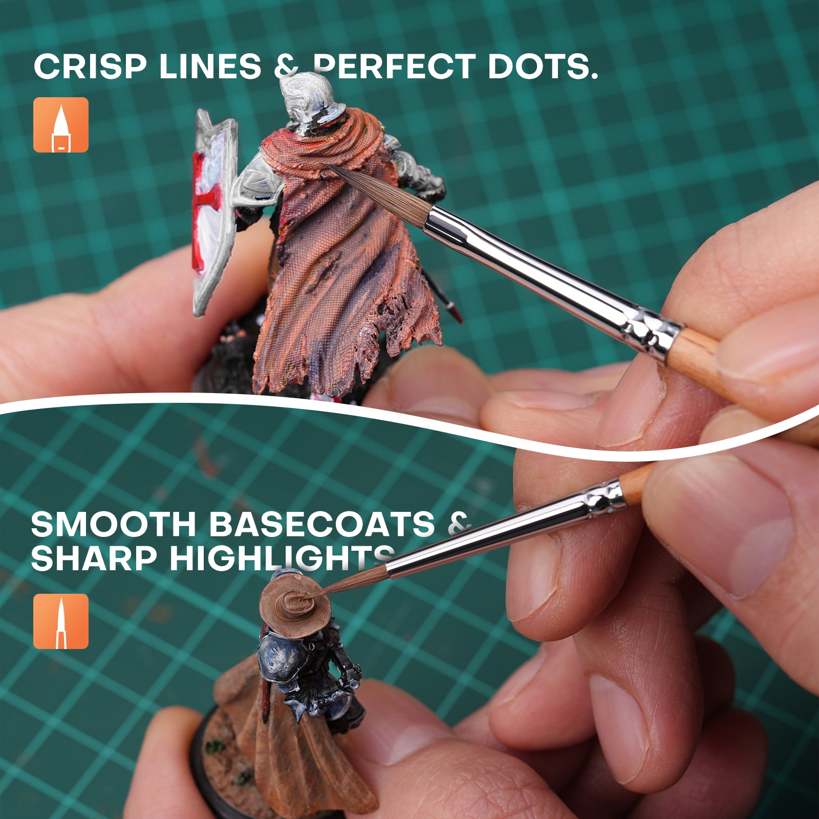 - Size 0 Round (8.8mm): Master ultra-fine lines, insignia, and delicate details—ideal for lining on Tau Fire Warriors or tiny decorative elements on Warhammer models.