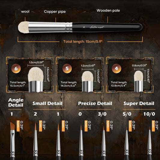 Miniaturowy model farby Golden Maple Brushes-10pcs mikro-szczegół Zestaw pędzli