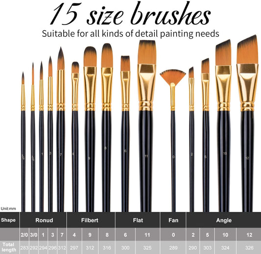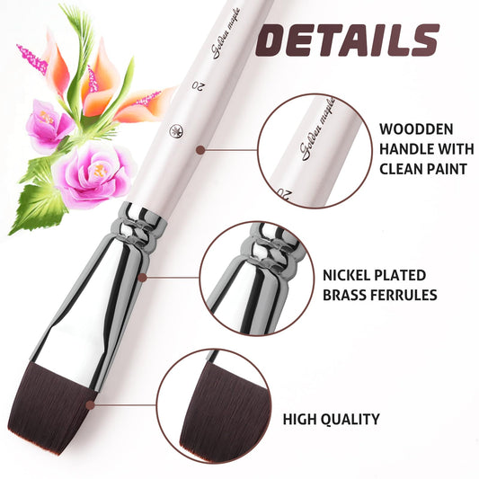 Golden Maple 15PCS Nylon Brush Set Płaski pędzel Filbert Brush Okrągły pędzel Szczotka do płatków języka kota Szczotka wentylatora (P00015)