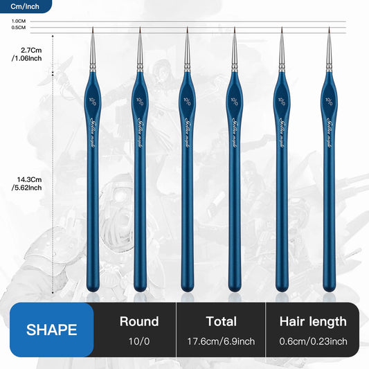 6PCS 10/0 Extra Fine Detail Miniature Paint Brush Set