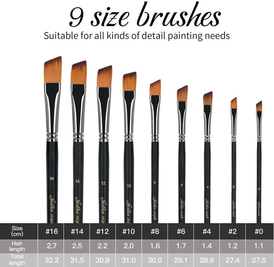 Złoty Klon 9 sztuk/zestaw Ukośna Końcówka Nylon Włosy Długi Uchwyt Kątowe Szczotki Do Farb Zestaw (B00001-XTGM)