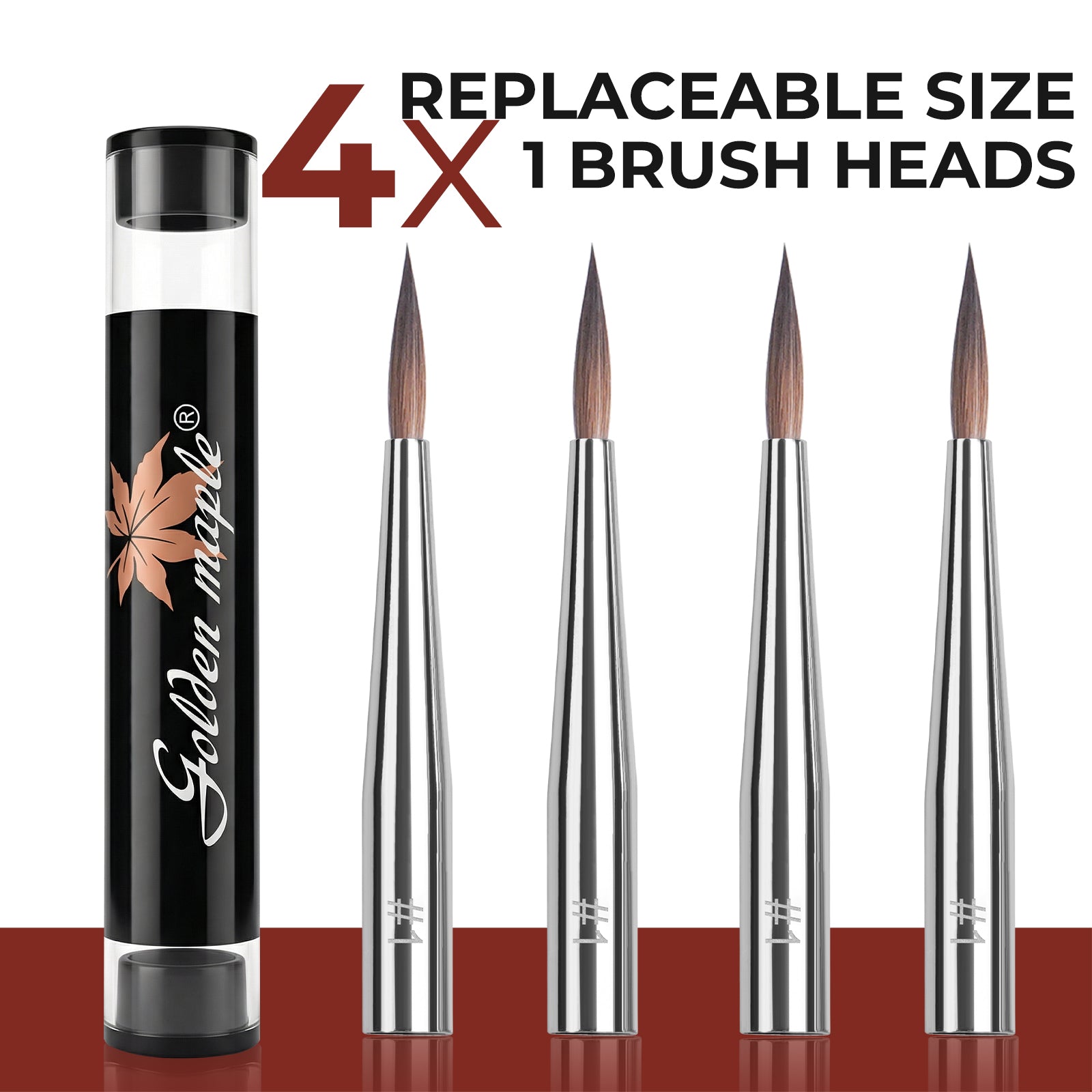 4 Replaceable Brush Heads | Kolinsky Sable Brush with Red Sandalwood Handles