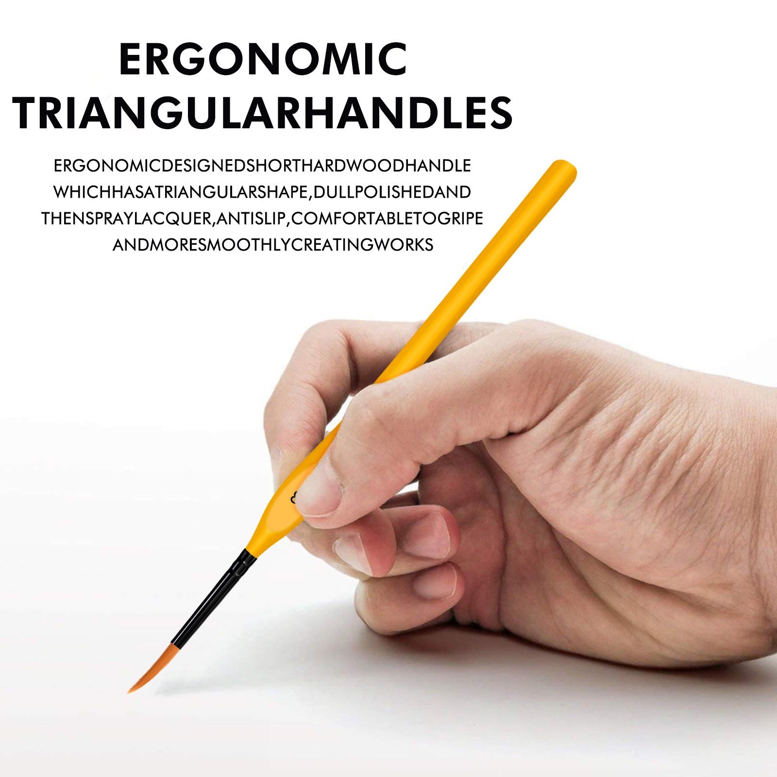 The ergonomic triangular barrel ensures a secure and comfortable grip, reducing hand fatigue during long painting sessions. The brushes feature high-quality synthetic bristles that maintain a sharp point and smooth application, ideal for intricate details, lining, highlighting, and touch-ups on war gaming miniatures, dollhouses, model cars, planes, and other detailed projects.