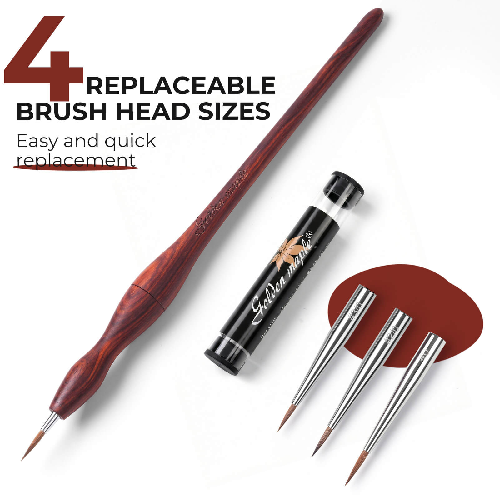 Enhance your art with this premium brush featuring Kolinsky sable hair for excellent detail and color. The ergonomic rosewood handle offers comfort, and four interchangeable heads make technique changes easy.