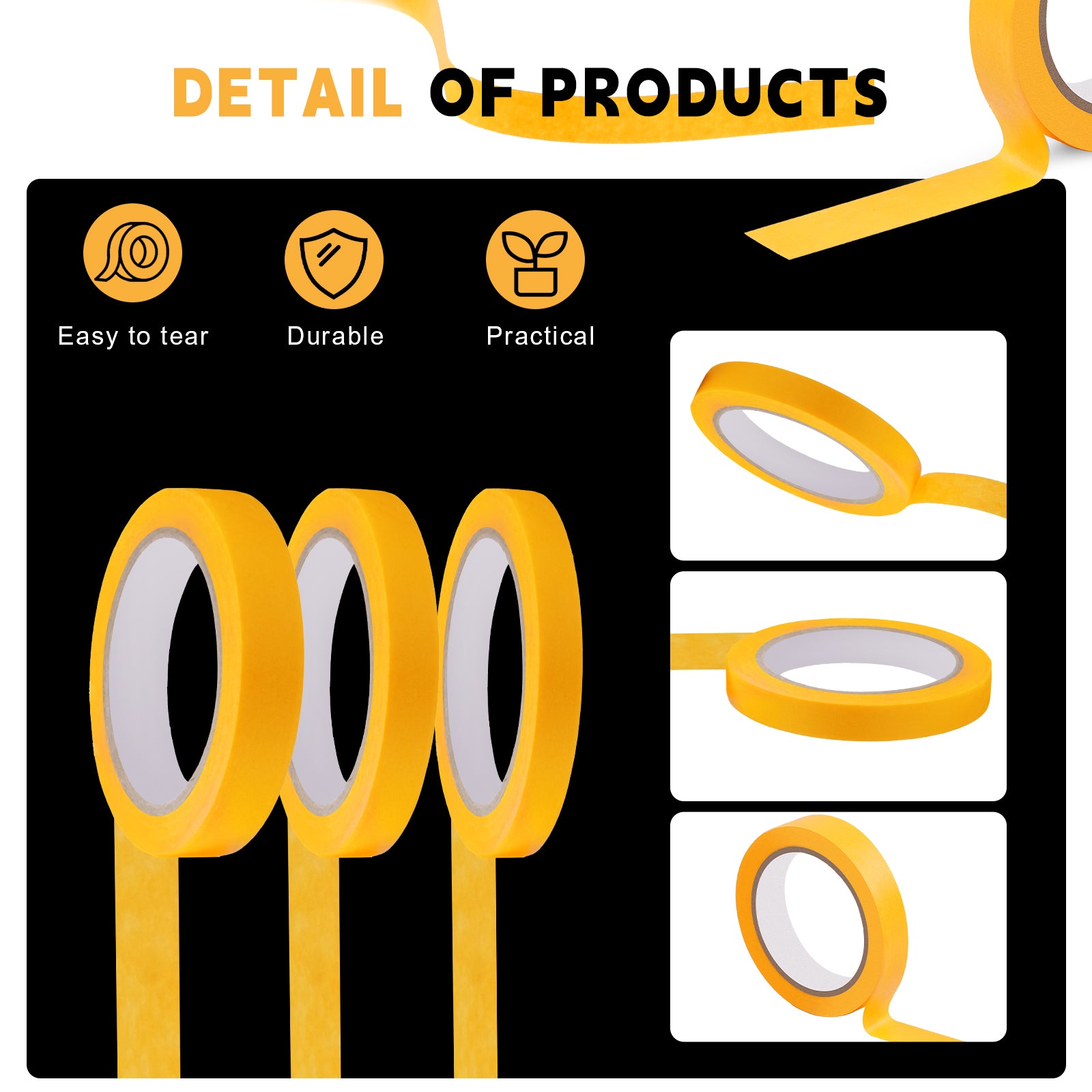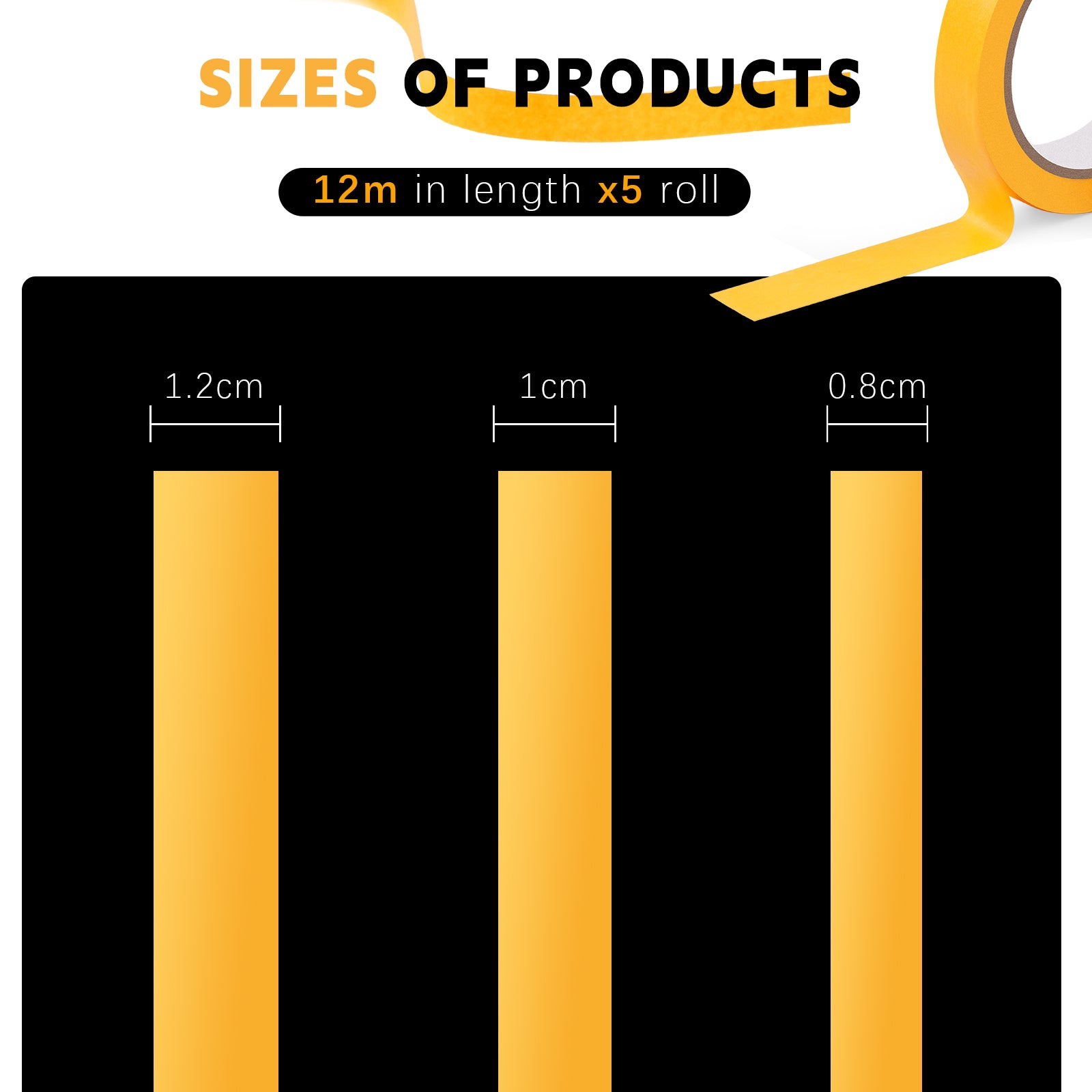 Goldenmaple 5 Rolls Pinstripe Tape - Masking Tape 5/16", 5/13", 15/32"Inch Wide, - Thin Painters Masking Automotive Tape for DIY, Miniatures, Car, Auto, Paint, Art, Tumblers (Yellow)