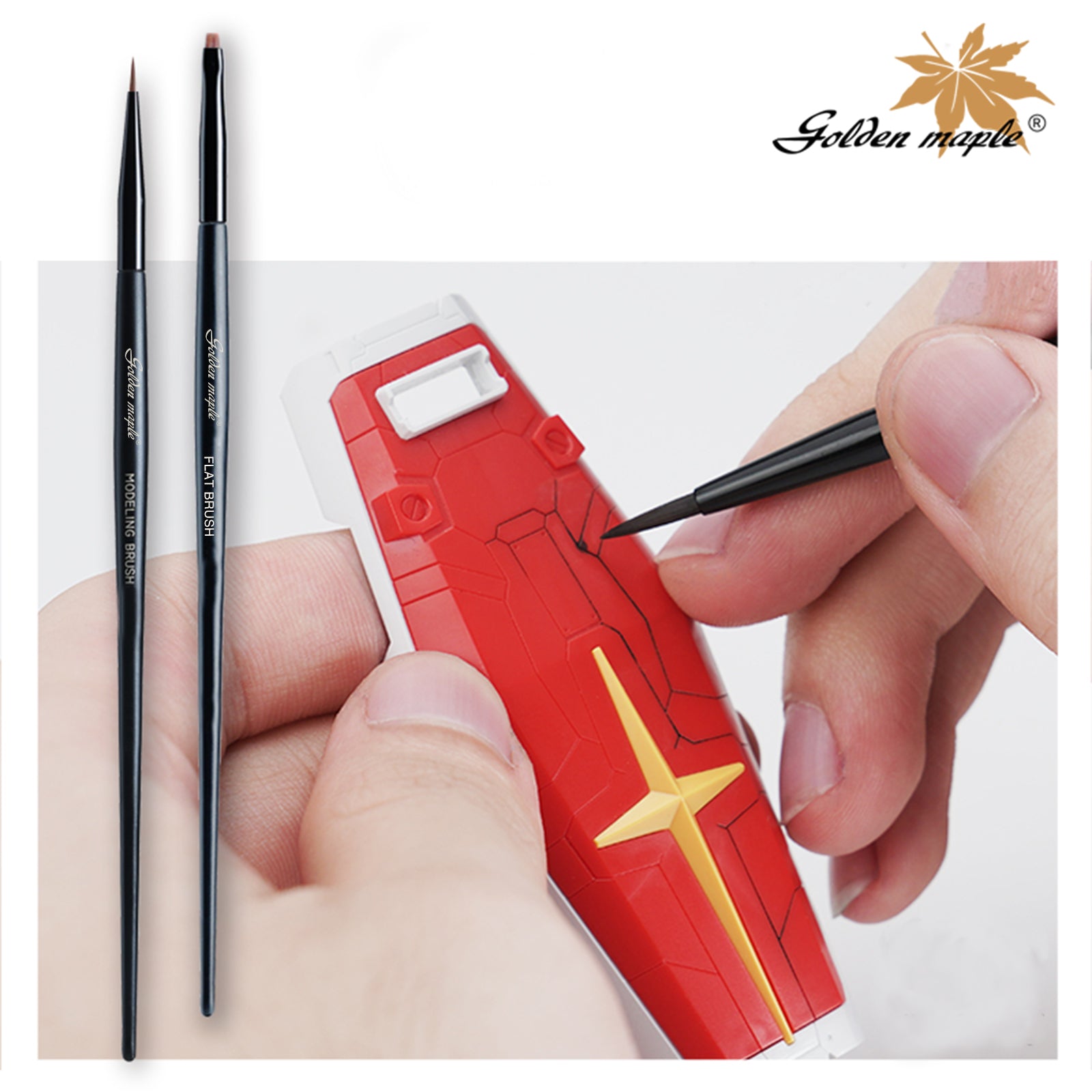 Golden maple modeling brush flat brush line drawing water-based paint marker Gundam model tool