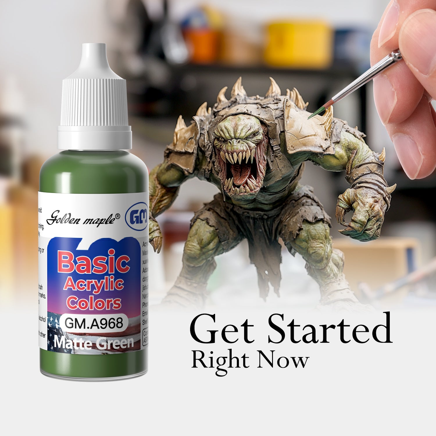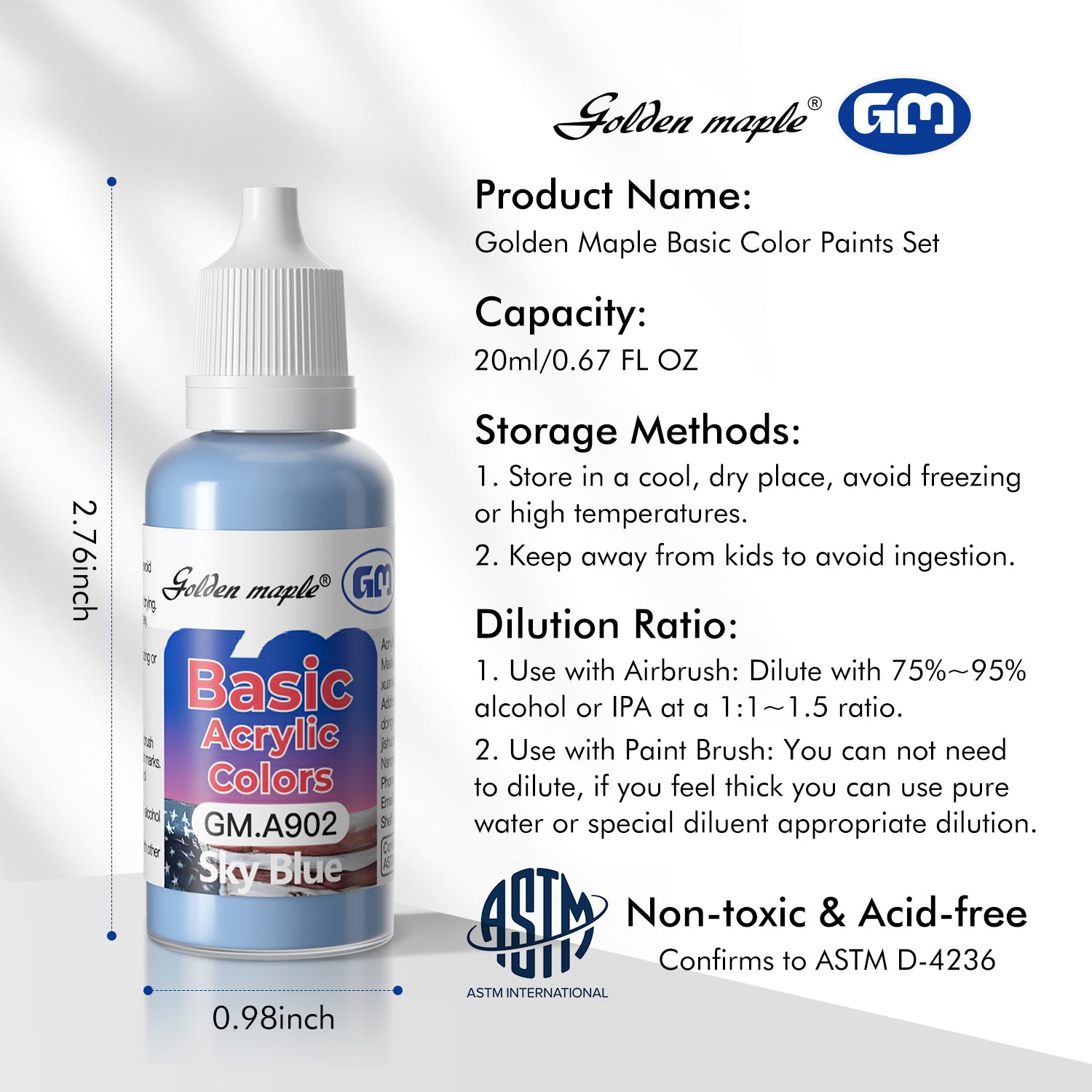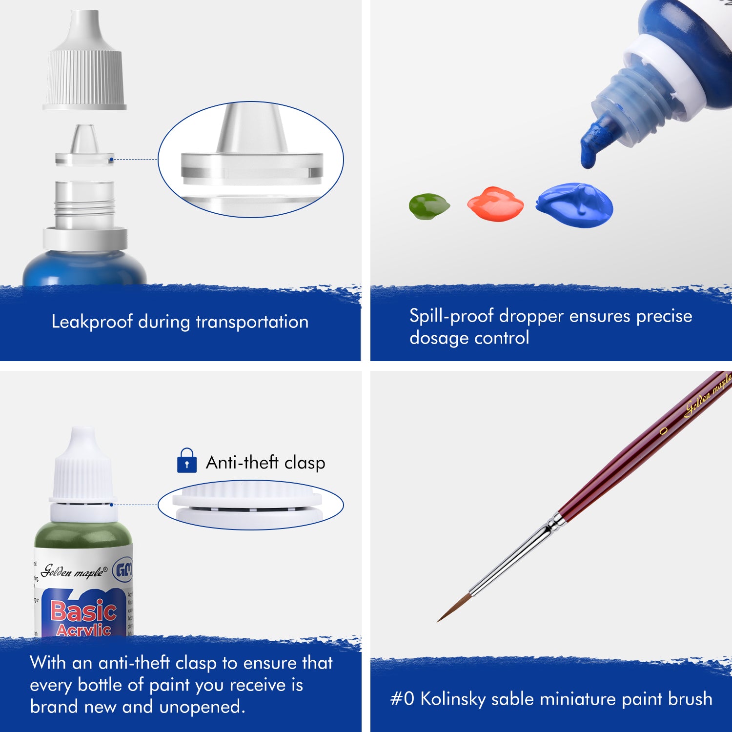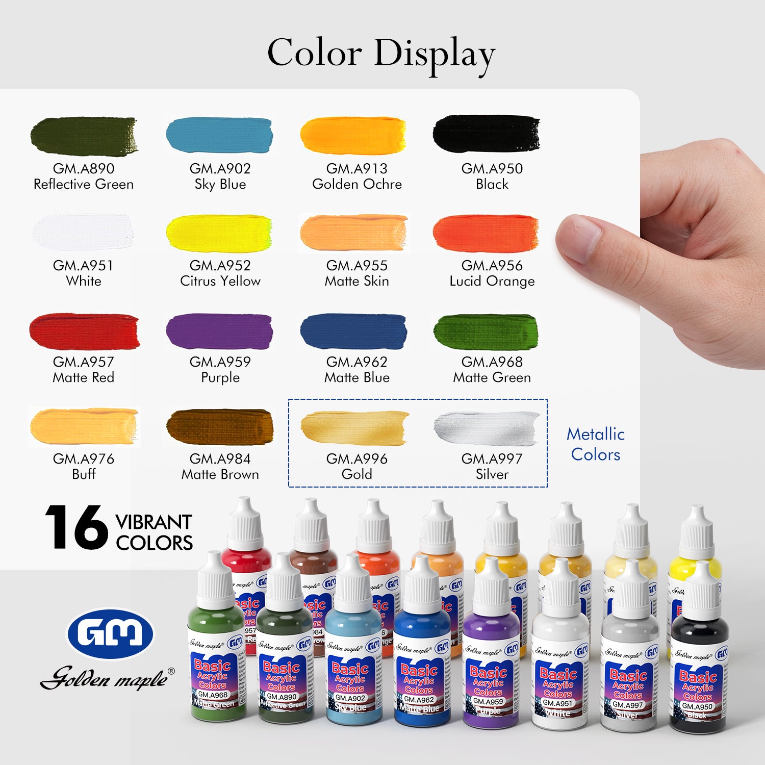 Golden Maple Miniature Paints Set - 16 x 20ml Basic Colors Acrylic Paint Set