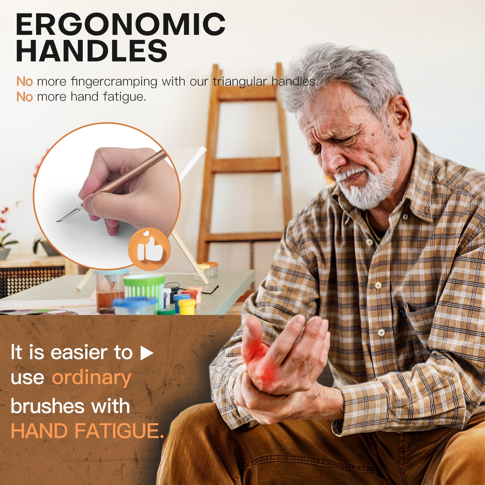 - 【 Thiết kế tay cầm công thái học 】 Tay cầm hình tam giác với lớp phủ UV 7 lớp, mang lại sự kết hợp hoàn hảo giữa sự cân bằng và thoải mái, bạn có thể sơn Miễn là bạn muốn mà không bị đau. Và chúng sẽ không lăn ra khỏi bàn.
